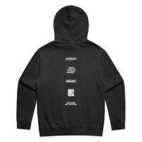Pullover hood, drop shoulder, kangaroo pocket, self-fabric lined hood, no drawcord, garment dyed, sleeve cuff ribbing